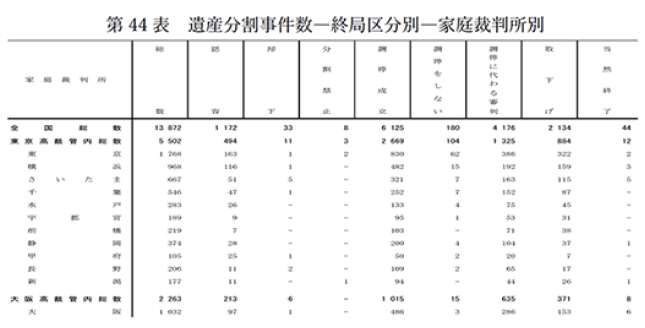 現在公開されている最新の司法統計である令和5年度の司法統計によると、家庭裁判所へ持ち込まれた遺産分割争いの件数は13,872件です。