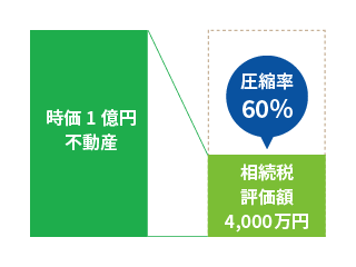 たとえば、1億円の時価がある不動産でも、相続税の評価額は4,000万円程度になるケースもあります。